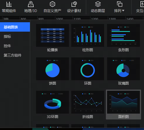 在编辑状态下点击面积图组件即可对其进行配置,配置内容分为样式、数据和交互三个Tab。(本节仅介绍面积图特有属性的配置,基础图表共性的配置请参考下文"组件配置"