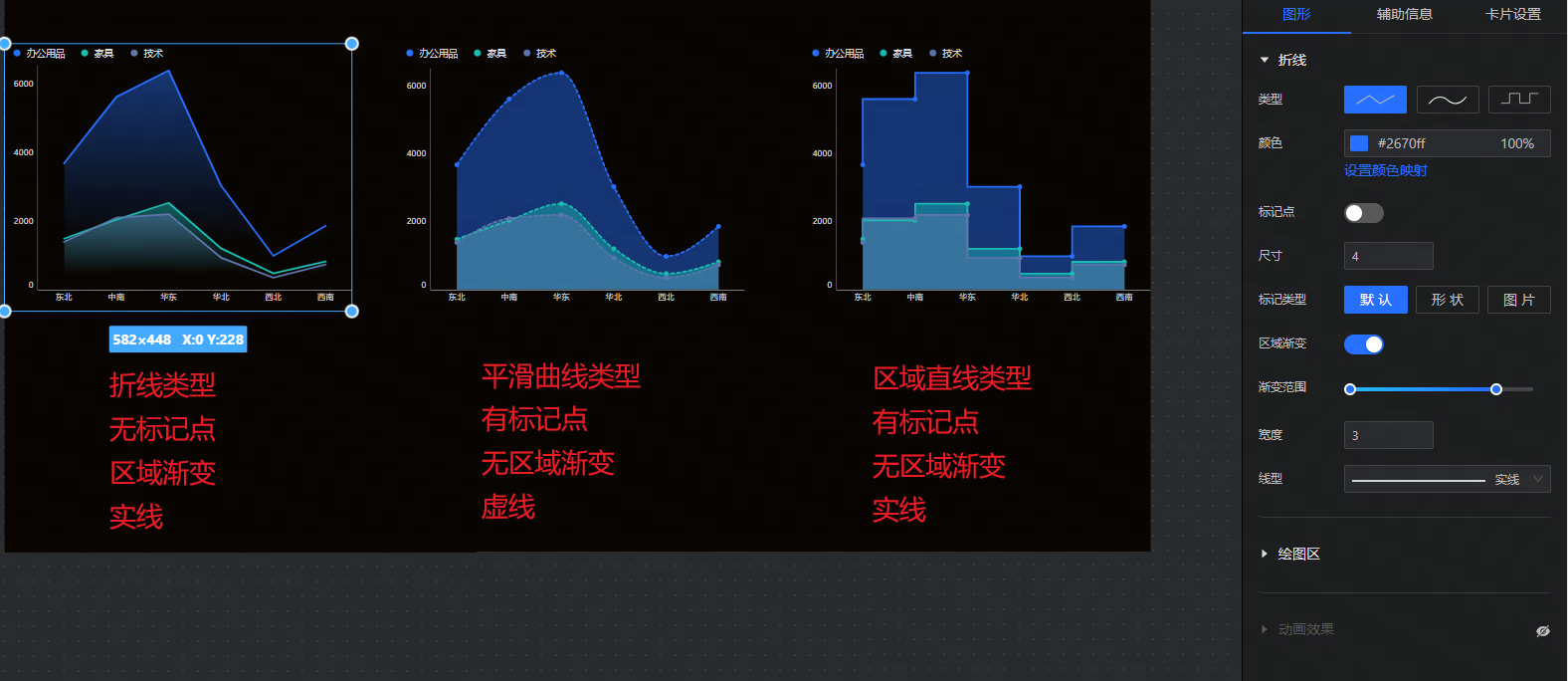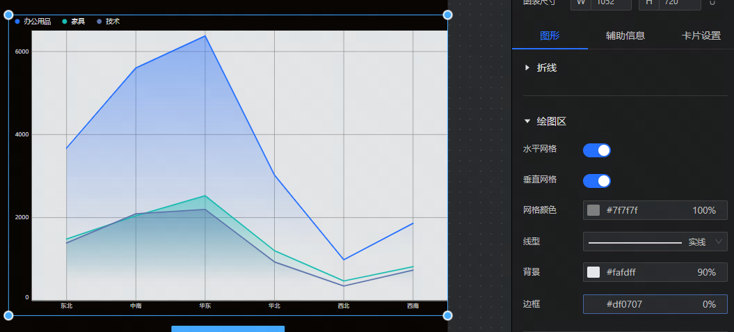 • 图例:设置面积图是否要展示图例,以及图例的展示位置、文字样式。