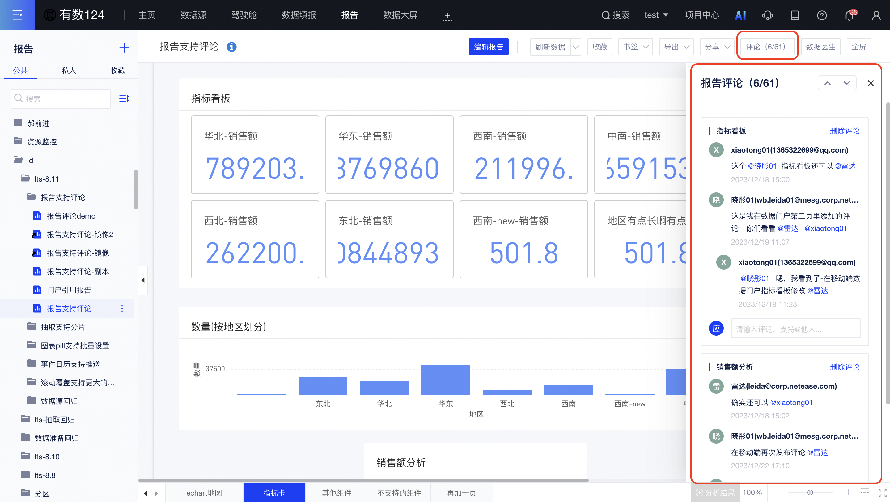 注意,图表删除的同时删除该图表下的评论;报告复制、镜像、覆盖、导入导出时不带评论。