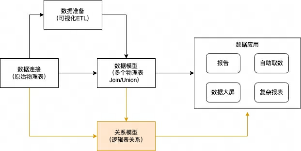 您可以在普通数据模型的基础上开启关系,即增加一个关系层,也可以直接在原始的物理表上进行关系模型的创建。
