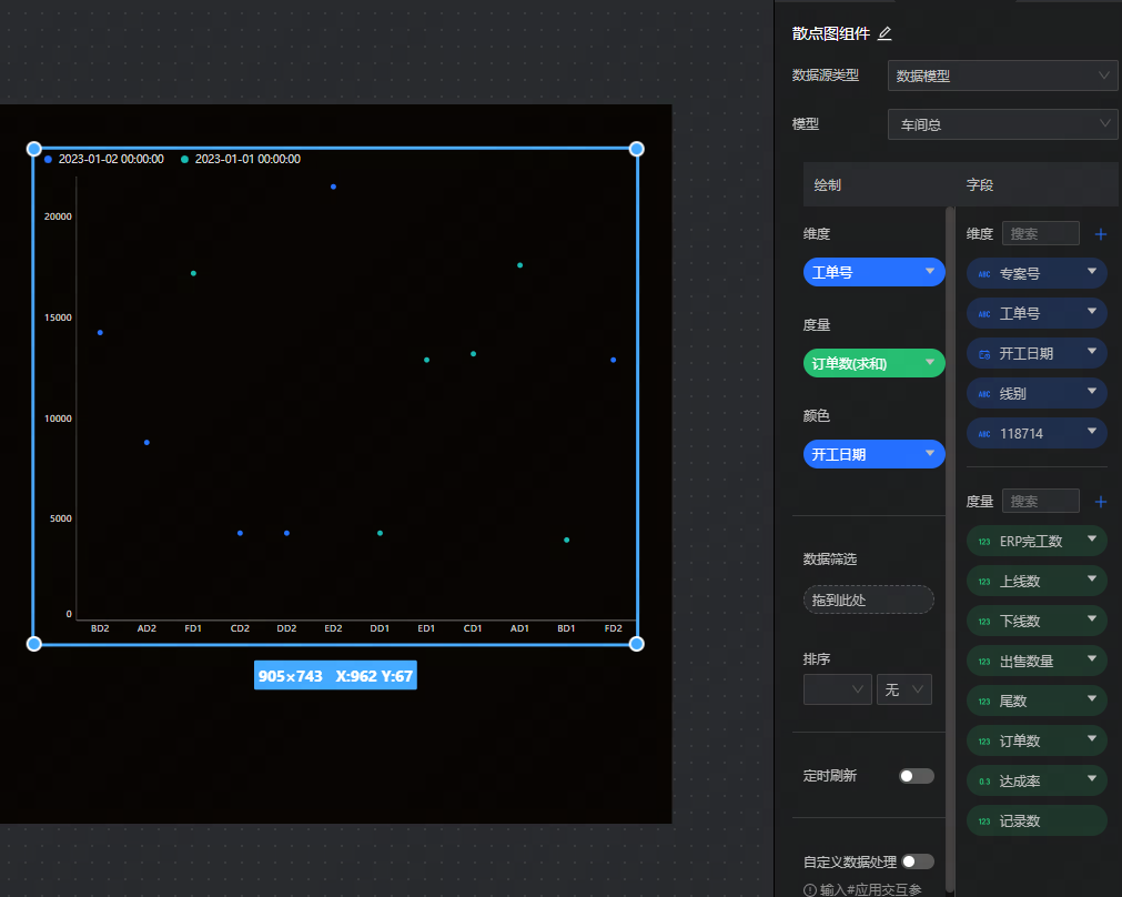 • 维度:设置维度字段,如下图中的“工单号”字段。