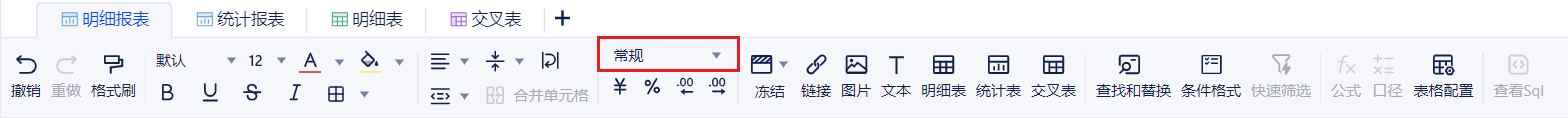 - 顶部工具栏,显示为当前数据格式,默认为“常规”。