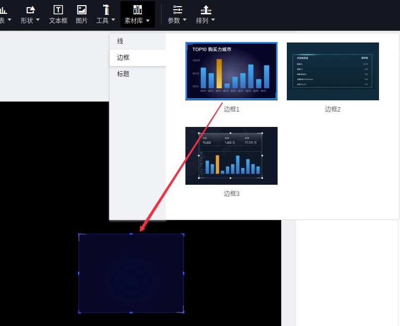 (1)点击“素材库”,选择“边框”到画布;