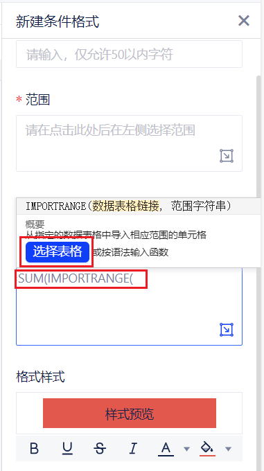 - 范围:支持选择一个数据应用范围,支持长按ctrl选择离散的单元格。