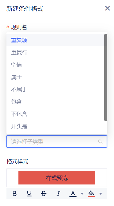 - 若同时触发了多个条件,仅展示优先级最高的条件的样式格式。