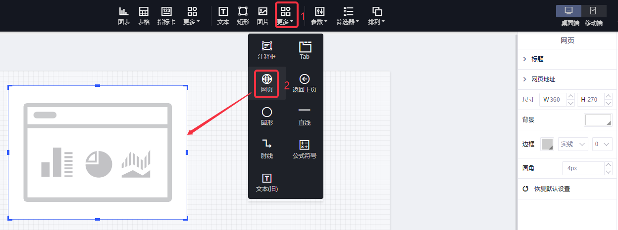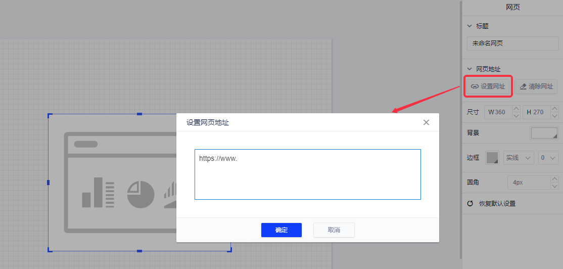 1. 概述2. 快速入门3. UniqueID传参1. 概述网页,可以帮助您将网页嵌入到报告中,如果您要在报告内访问其它网页,可以使用该控件。 2. 快速入门(1)选择“Tab”,在画布上画出一个空白的Tab控件; (2)在右侧配置面板点击“设置网址”,在弹窗中输入目标网址后点击确定; (3)您也可以进行清除网址重新编辑的操作,如下图所示: 3. UniqueID传参网页控件还支持UniqueID传参,在网址后输入#,可快速插入用户账号,当用户登录时,网页控件的URL即会带上用户的账号信息。