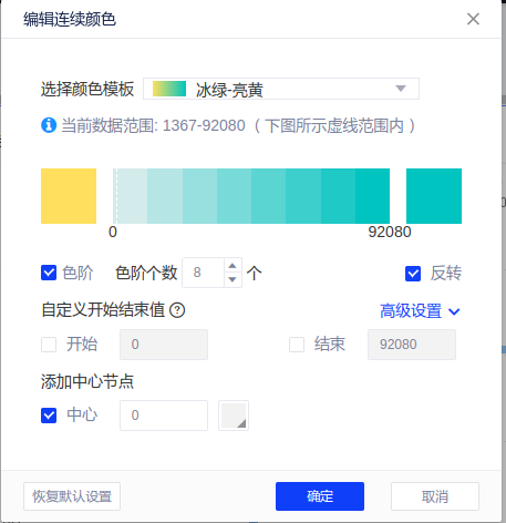 然后选择一个颜色模板,这里选择的是冰绿-亮黄,开启反转