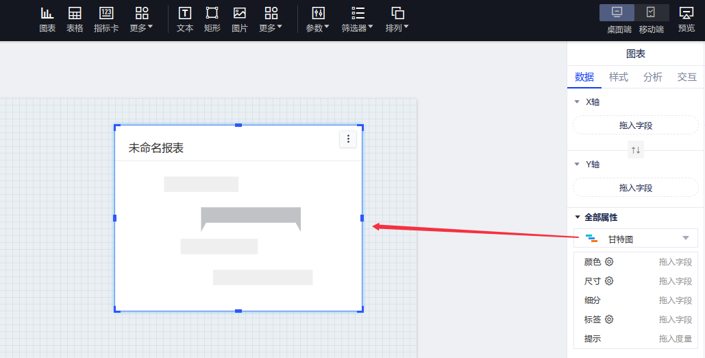 (1)首先在画布上添加一个图表控件,然后将图表属性调整为甘特图;