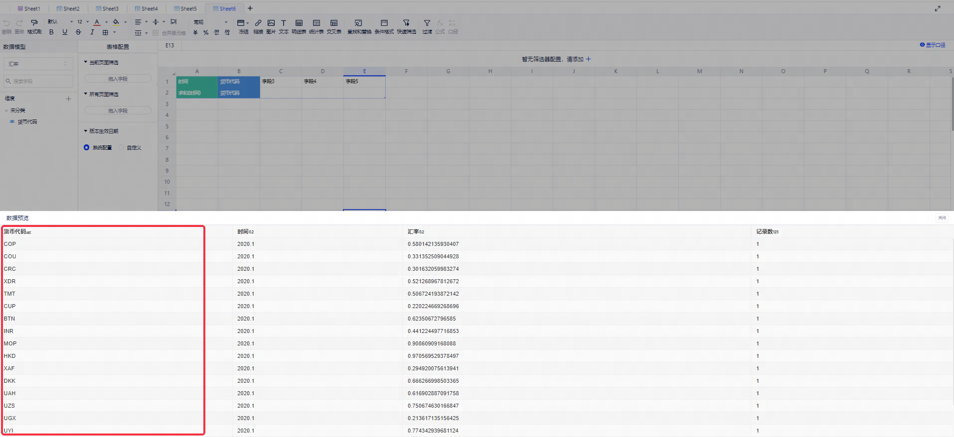 ② 实现维表配置后:数据显示与码值对应的货币名称