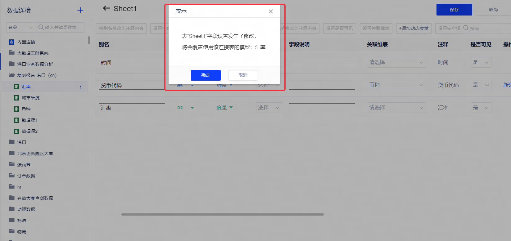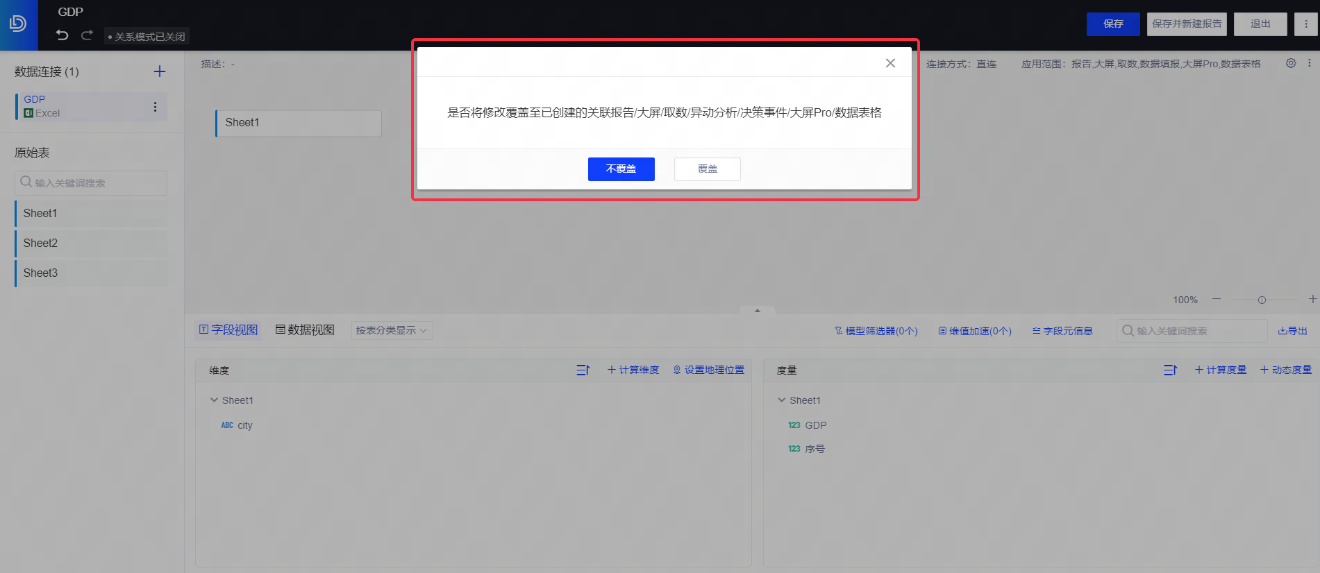 用户完成字段关联后,将覆盖使用该连接的数据模型