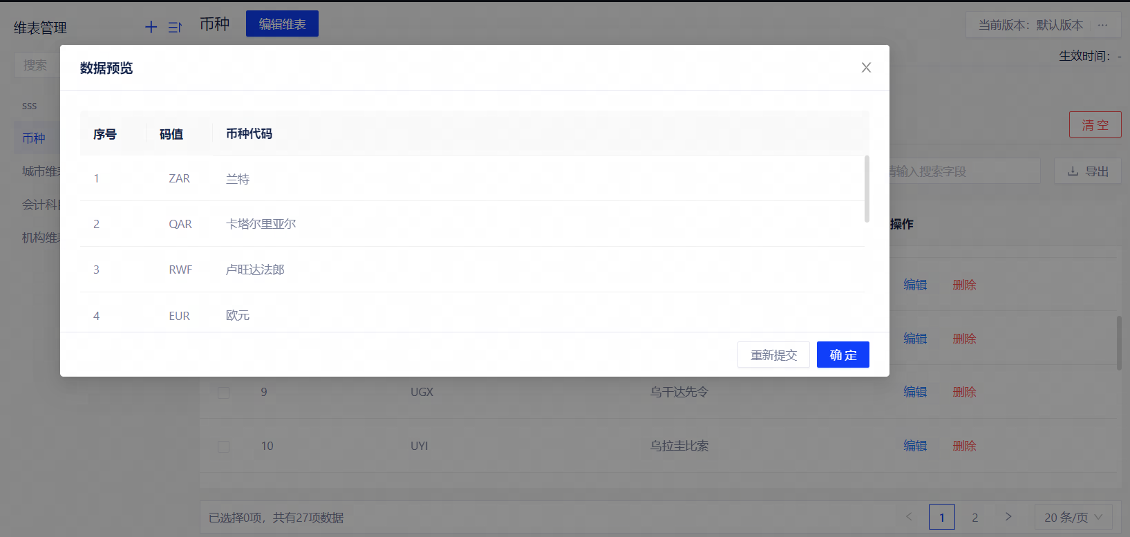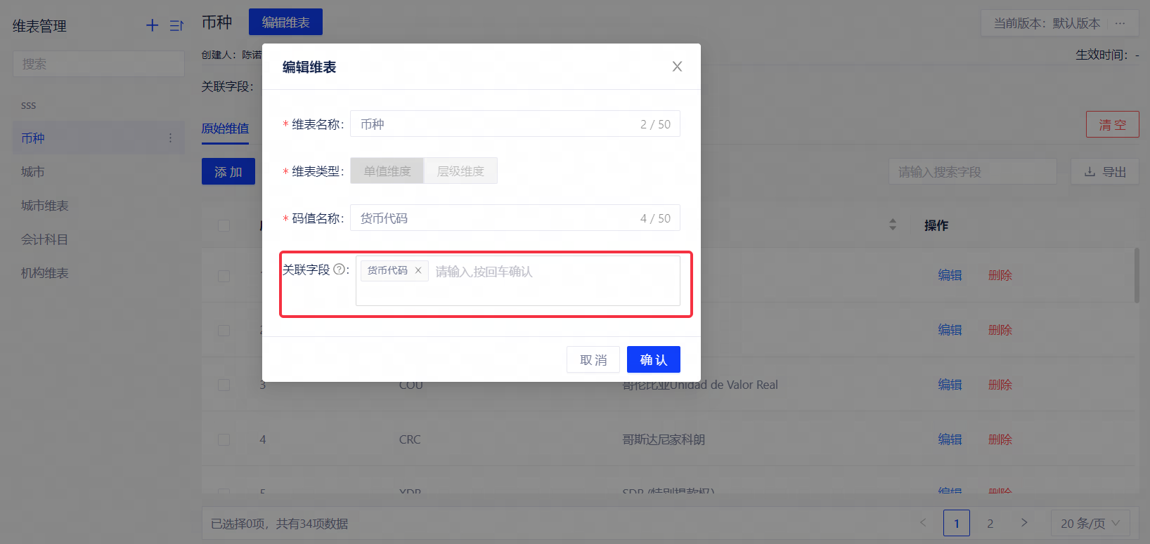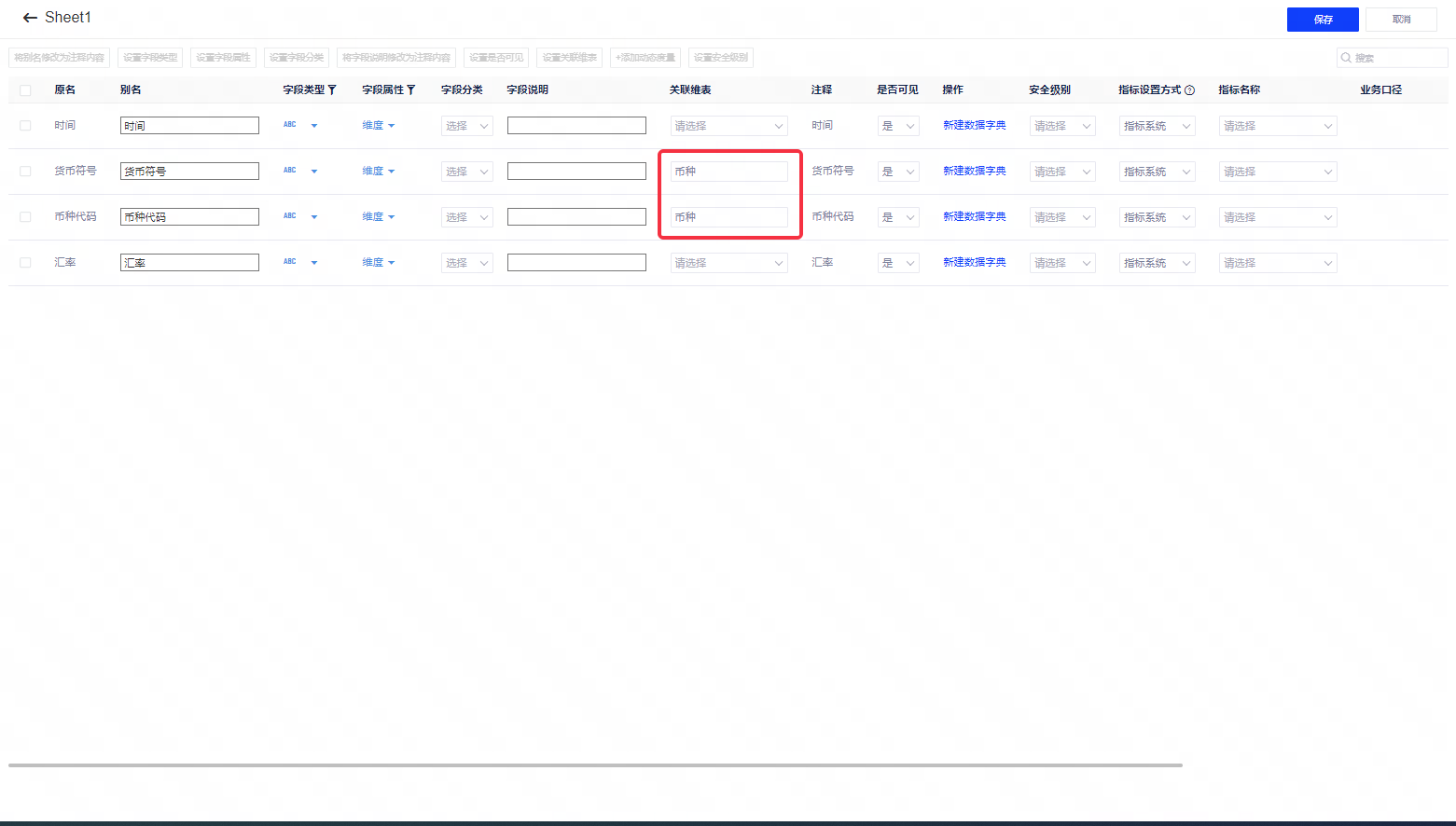 用户创建了相应维表,如币种维表将码值和货币代码进行匹配