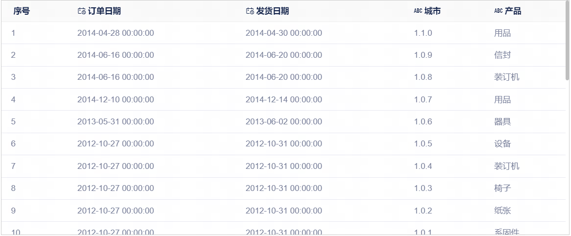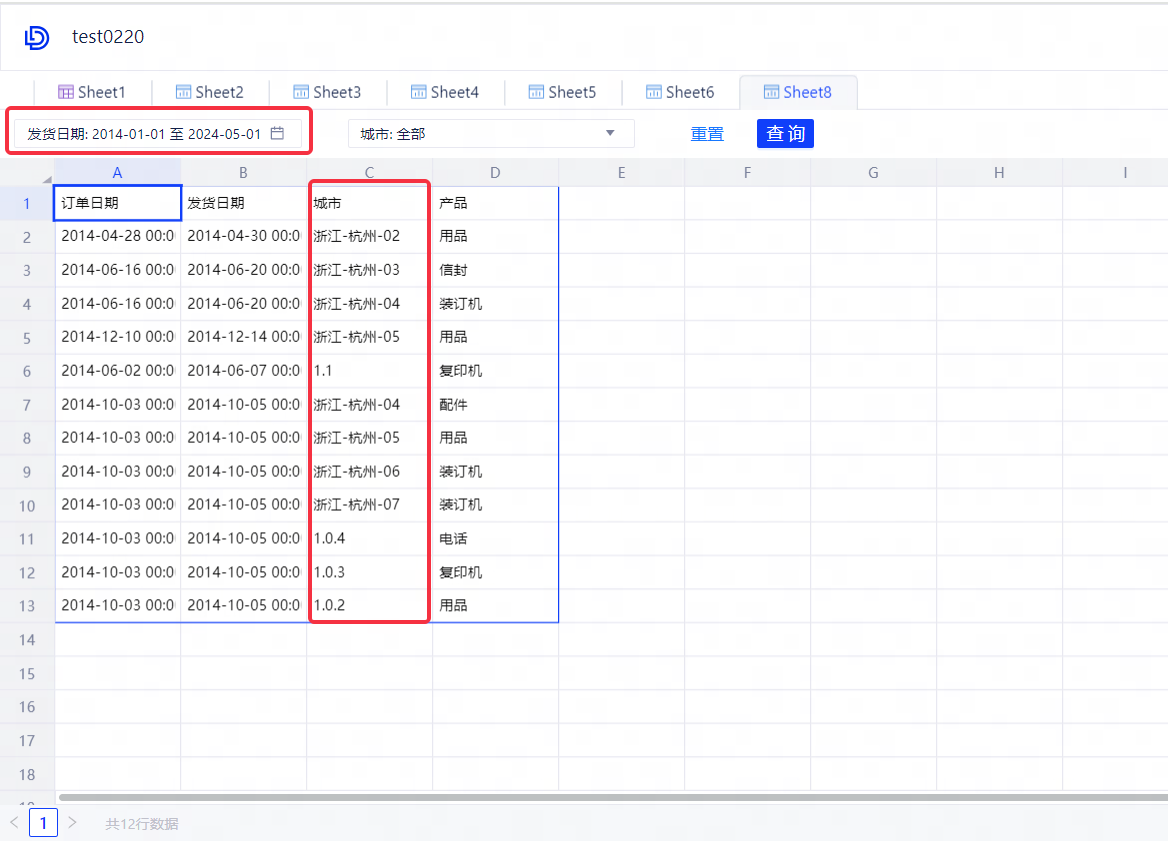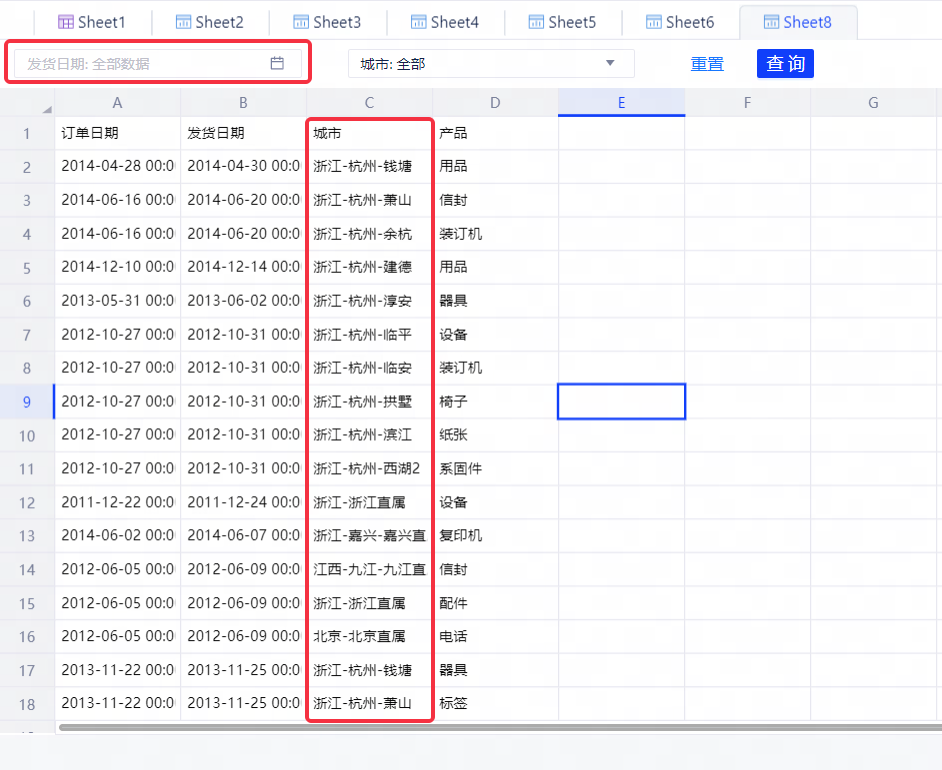 现存在一组业务数据包含订单日期、发货日期、城市等字段,根据行政区划信息变化,用户需获取并及时调整城市信息