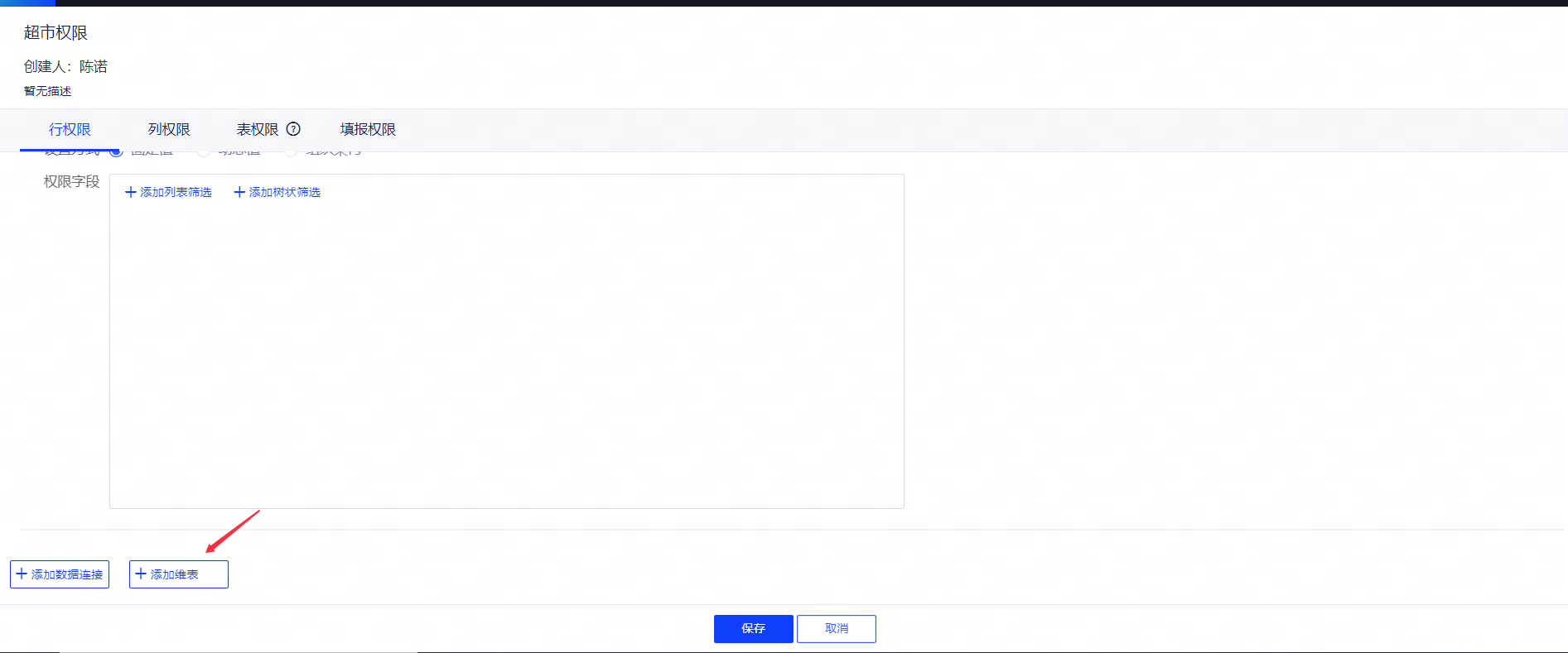 ② 行权限的添加方式选择“添加维表”,选择绑定过目标字段的维表后逐级匹配。