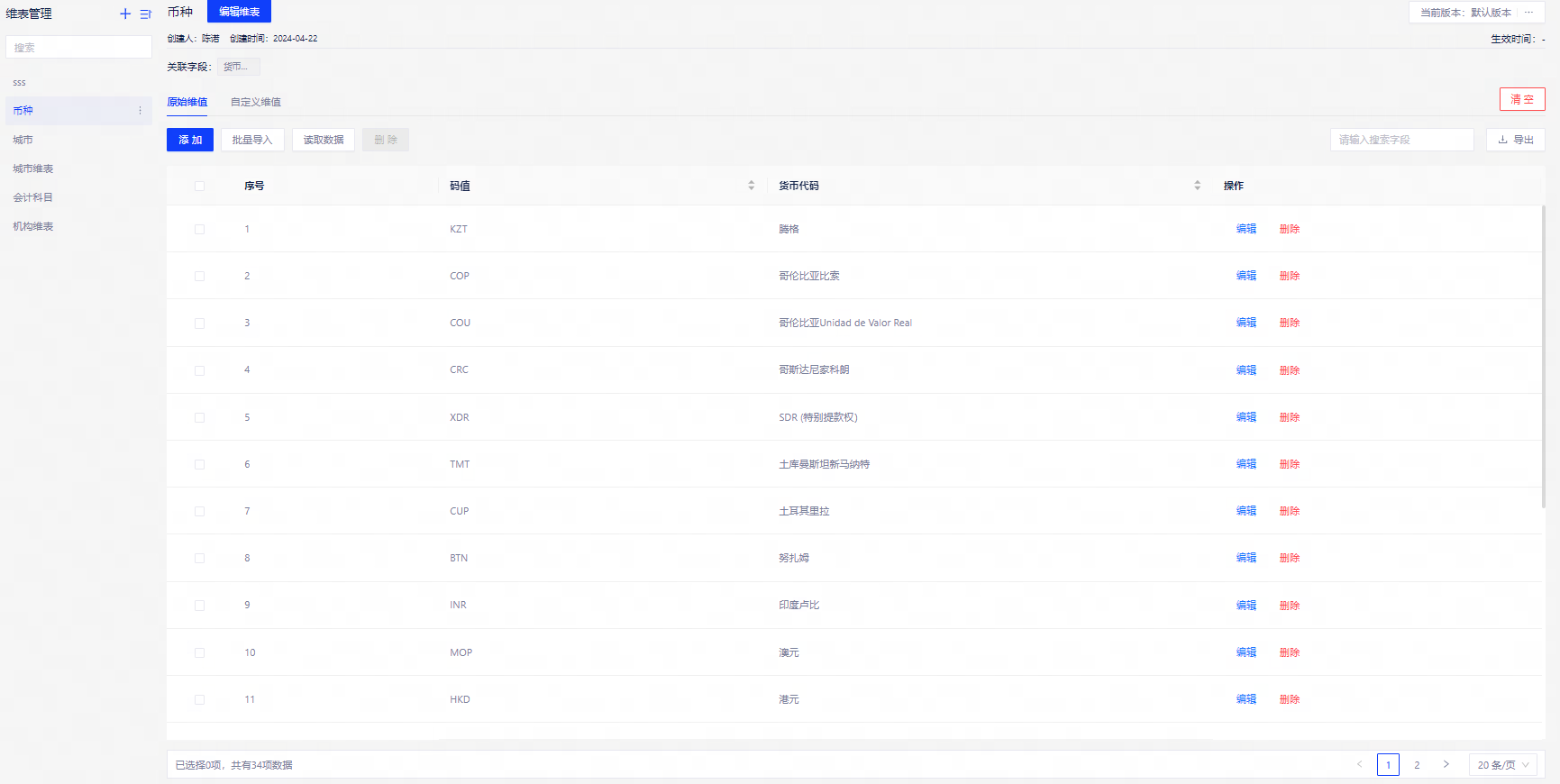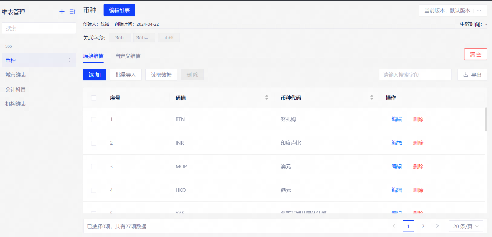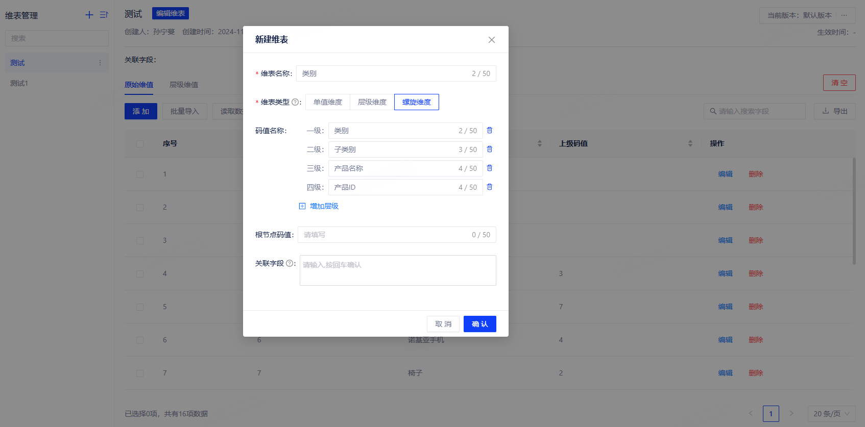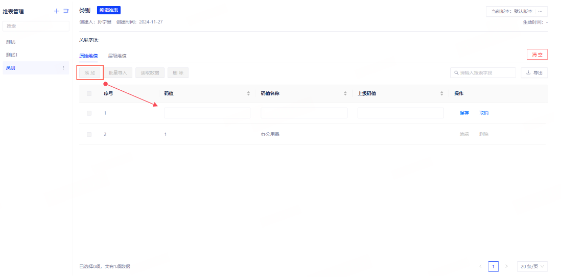 人工编辑:管理员人工编辑和维护数据维度,用户手动添加码值信息