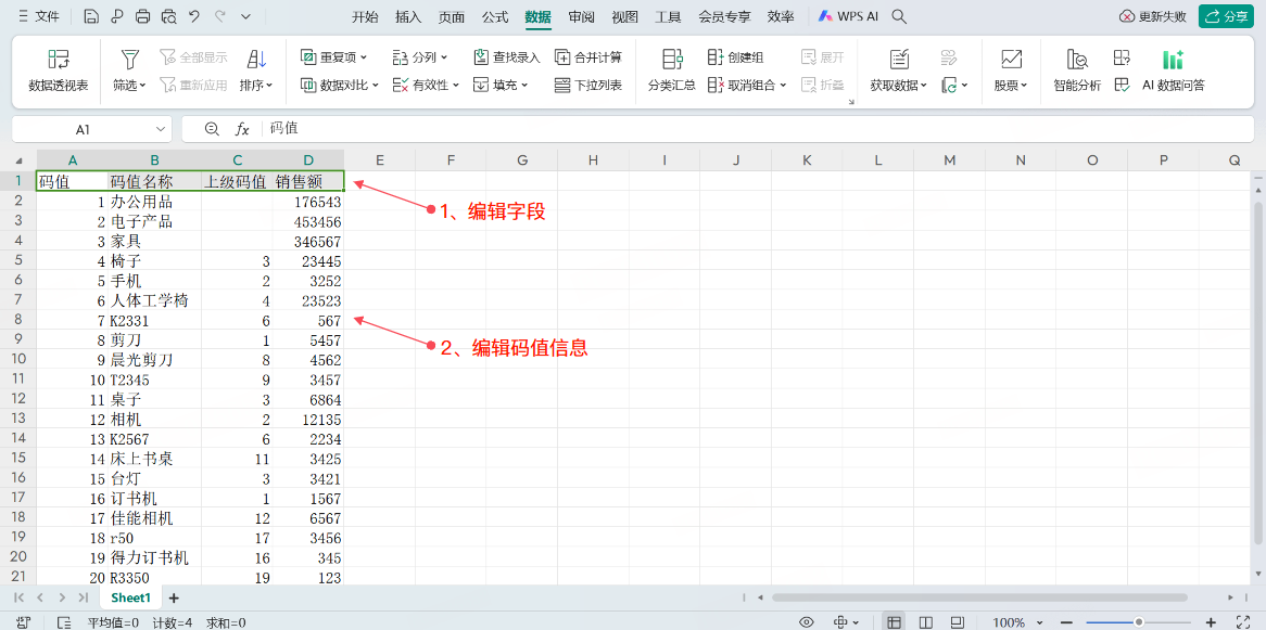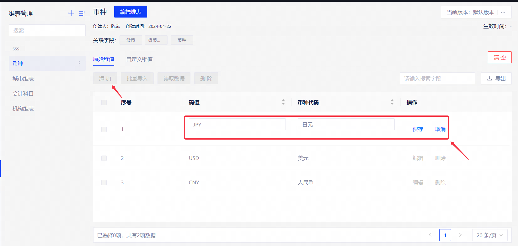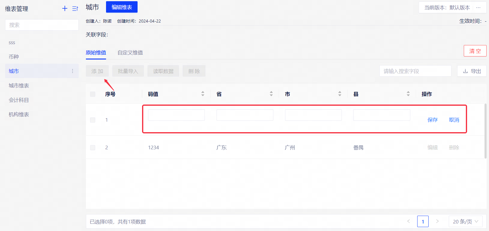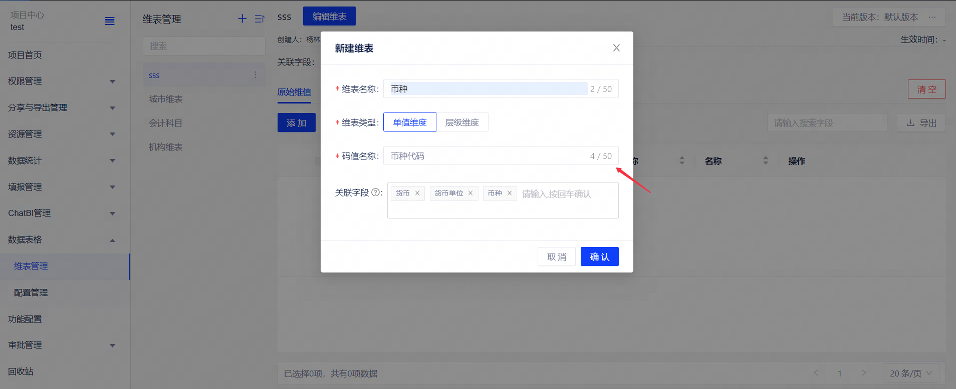 人工编辑:管理员人工编辑和维护数据维度,用户手动添加码值信息