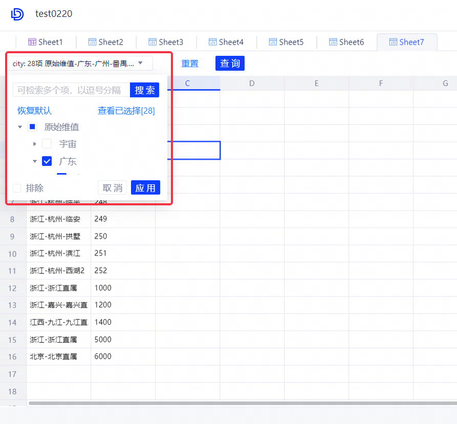 ② 实现维表配置后:数据显示与码值对应的城市名称