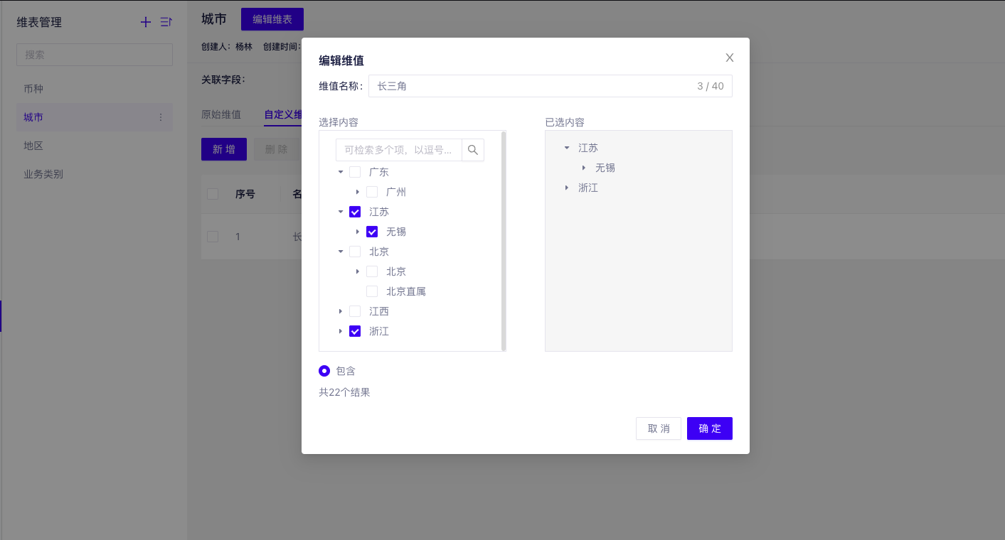 地区、行政机构、币种等数据维度在公司内是有统一规范,业务在使用报表和查看过程中一般是以维度名称作为分析和展示数据的依据,但是数仓建设过程中,开发人员一般使用码值这种更容易被机器识别的数据,在报表制作过程中需要将如上数据做维度和内容的转化。产品将维表数据存储在平台内,报表制作人和阅览者在查看维度数据时,系统会自动将码值转化为更加可读的名称。