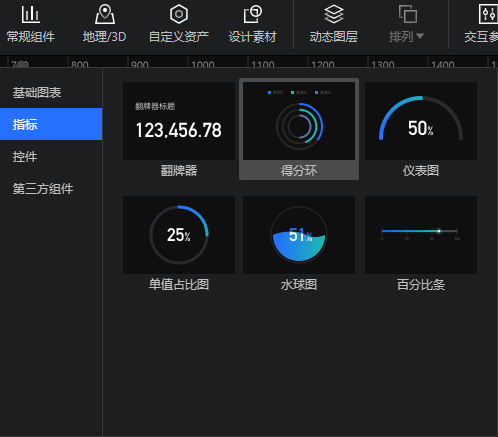 得分环的样式配置:分为图形属性、辅助信息、卡片设置两个子Tab,用户可以在这此调整颜色、字体、大小等。